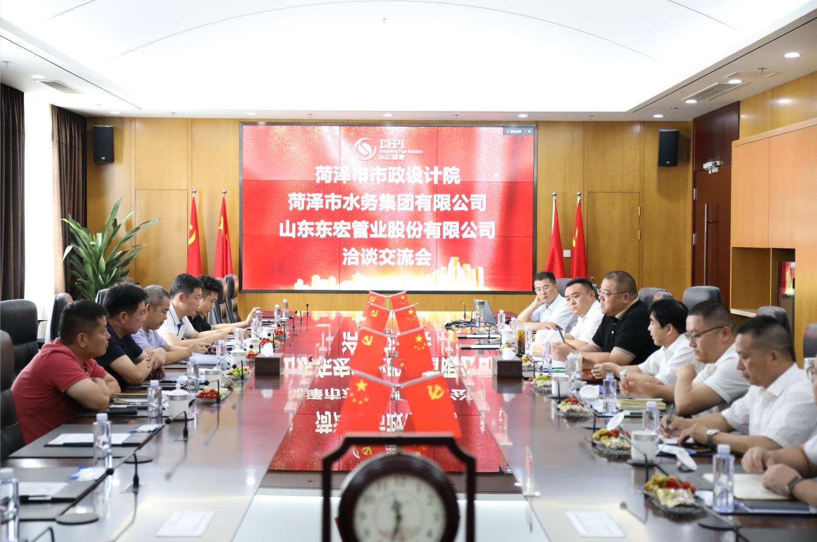 雙方在研發中心會議室舉行座談交流會,針對后續合作事宜進行了探討。總裁首先對設計院、水務集團領導一行蒞臨公司參觀交流表示熱烈歡迎。總裁表示,東宏經歷二十四年發展至今,心無旁騖攻主業,已形成了規格型號齊全、產品種類豐富的工程管道全產業基地,致力于構建工程管道產業生態圈,打造行業發展新標桿。下一步,東宏將加快推進合作進程,實現互利共贏。