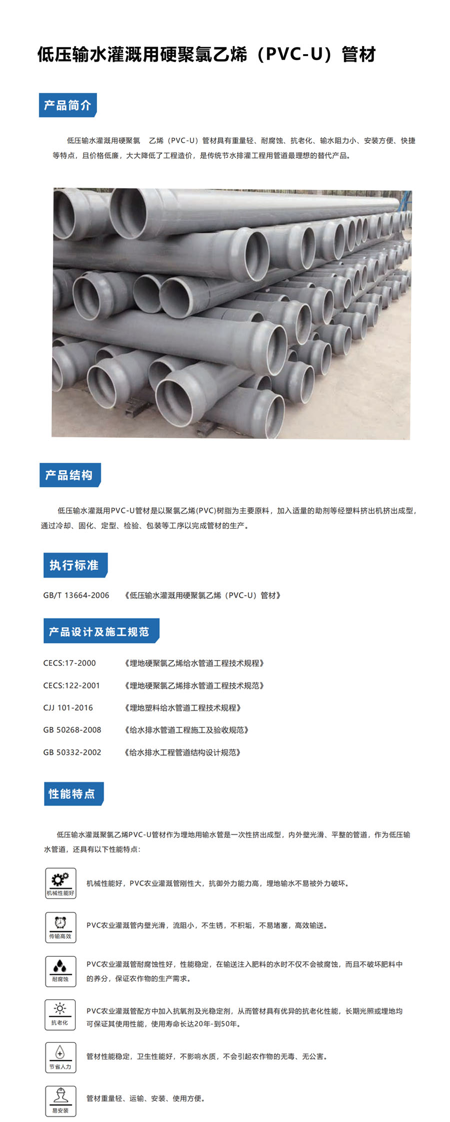 低壓輸水灌溉用硬聚氯乙烯(PVC-U)管道