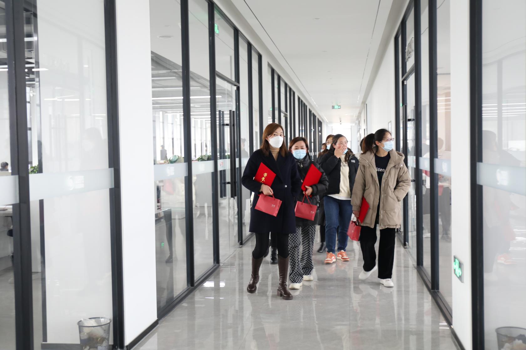 東宏股份創始人朱秀英女士將親自挑選的禮物及獲獎證書送到最美家屬手中,并一一握手表示感謝。隨后,公司領導邀請員工家屬參觀東宏股份營銷中心及智慧展館,讓員工家屬切身感受到公司的發展與成長,未來可以放心地繼續支持東宏的工作。