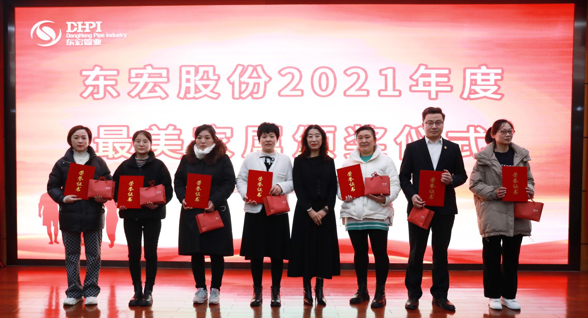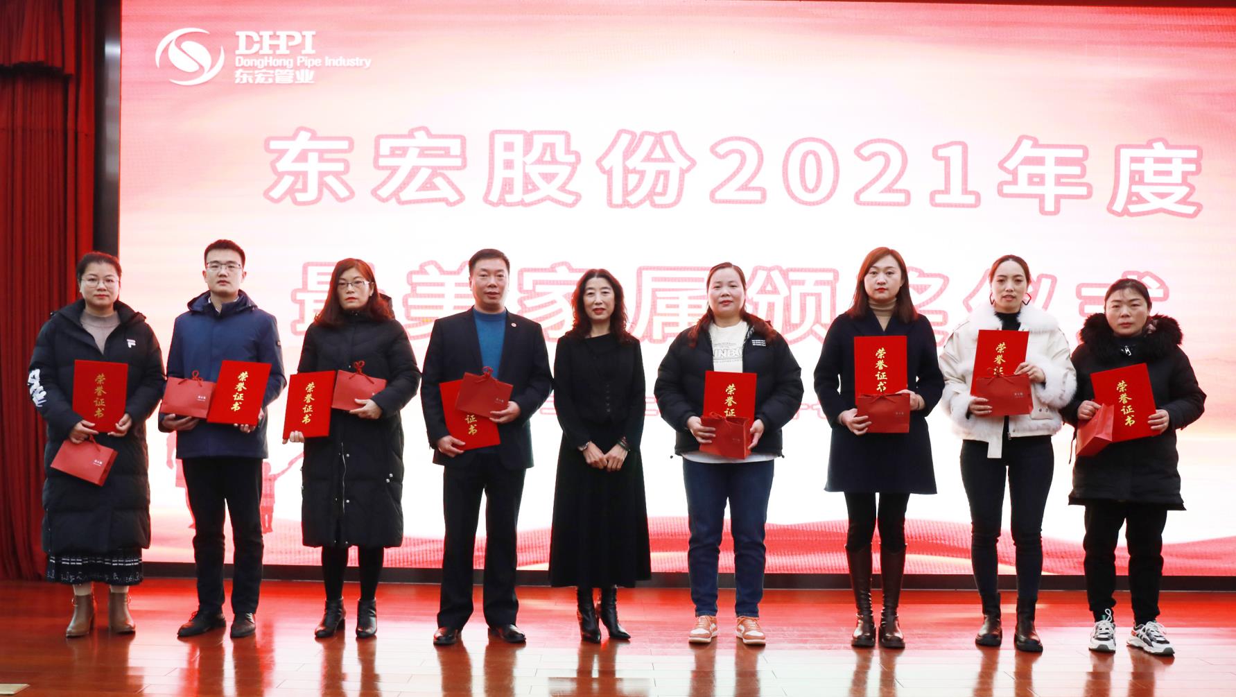 1月27日,東宏股份在研發中心多功能會議廳隆重舉行“2021年度最美家屬”頒獎儀式,感謝員工家屬對東宏事業的支持和付出。