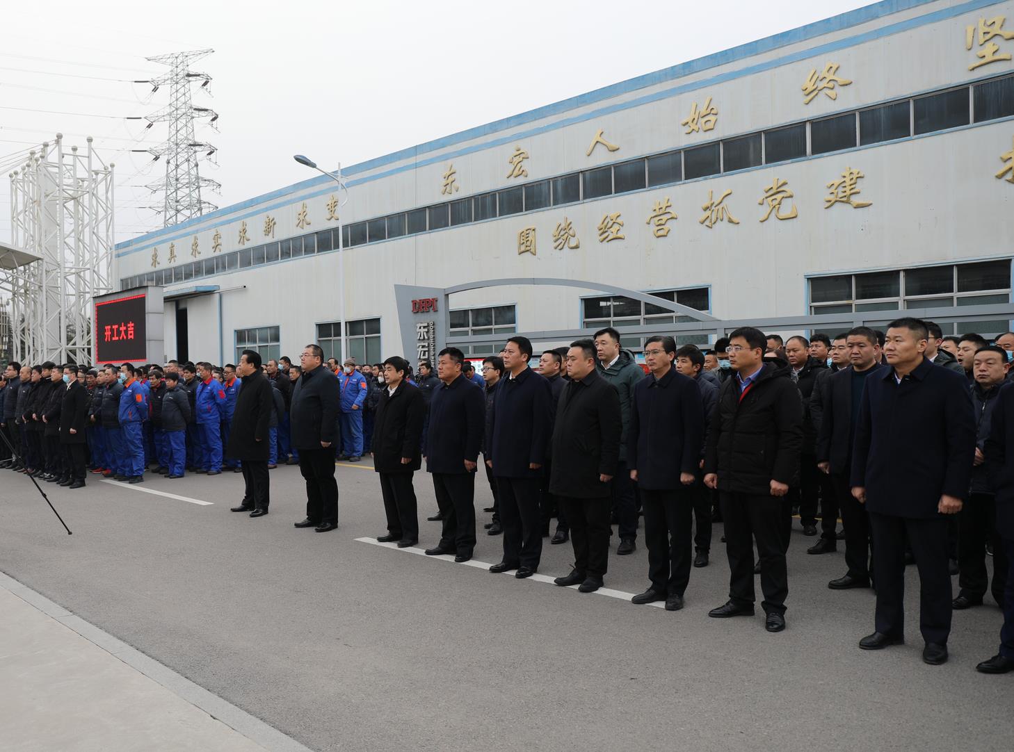 常務副總裁鞠恒山主持開工儀式。國旗儀仗隊邁著鏗鏘整齊的步伐,走向主席臺,伴隨著雄壯的國歌,五星紅旗與公司廠旗緩緩升起。全體員工精神抖擻、干勁十足,均以“滿格電”的良好狀態投入到新一年的工作當中,呈現蓬勃向上的新氣象。