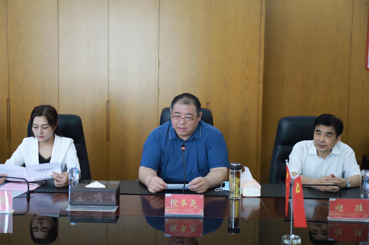 7月8日,全國工商聯宣傳教育部副部長聶志軍一行在濟寧市政協副主席、工商聯主席李敬,曲阜市委常委毛玉華,曲阜市政府副市長儲艷麗等相關領導陪同下蒞臨東宏股份調研并開展座談交流,公司總裁倪奉堯、黨建指導員趙勝、辦公室主任馬伯群陪同。
