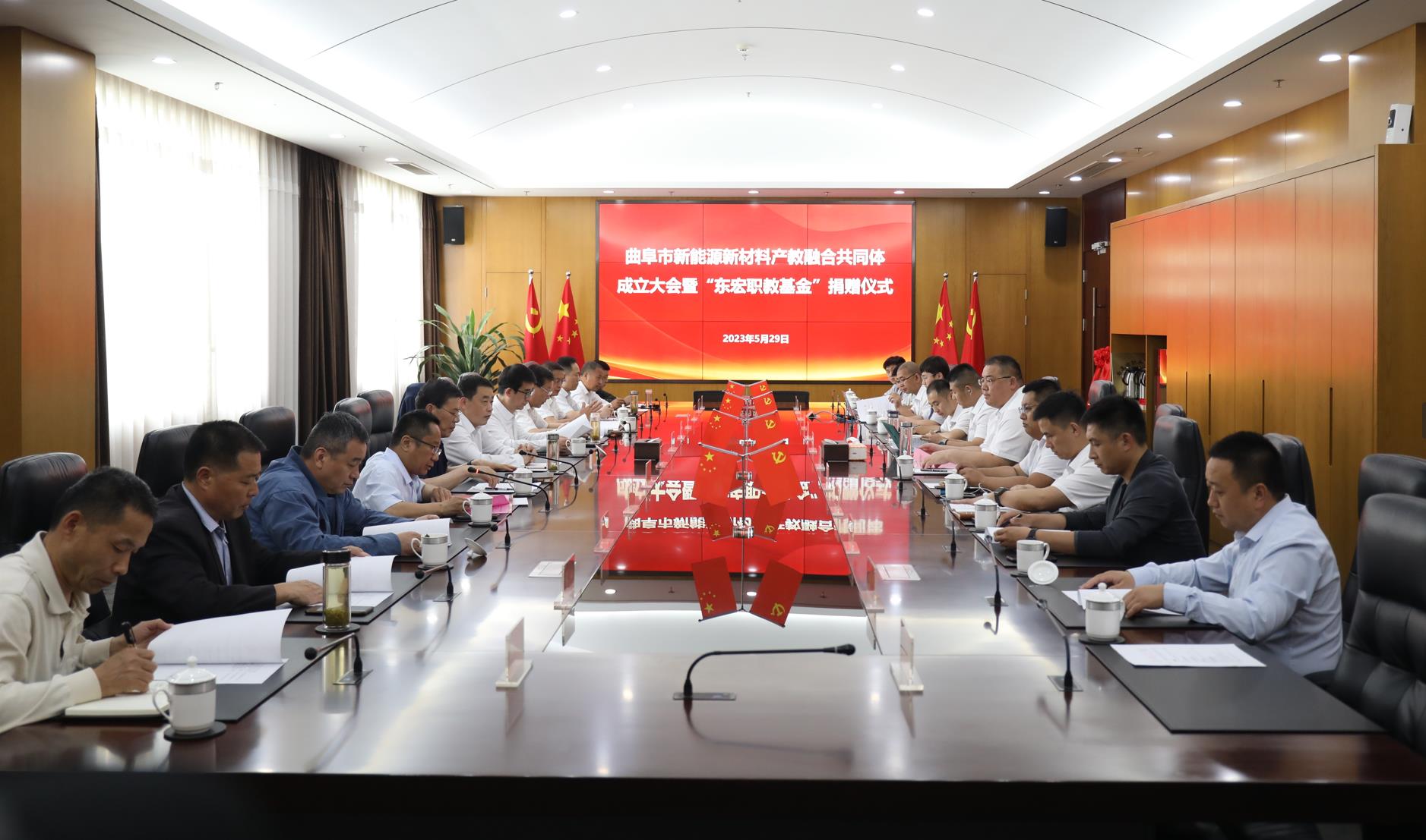5月29日下午,曲阜市新能源新材料產(chǎn)教融合共同體成立大會(huì)暨“東宏職教基金”捐贈(zèng)儀式在公司研發(fā)中心會(huì)議室舉行。曲阜市委常委、組織部部長(zhǎng)張衛(wèi)國(guó),曲阜市人民政府副市長(zhǎng)周凱,市委教育工委常務(wù)副書記、教體局黨組書記、局長(zhǎng)宮同文,曲阜市職業(yè)中專黨委書記王玉棟,山東東宏集團(tuán)有限公司黨委書記、山東東宏管業(yè)股份有限公司總裁倪奉堯,山東東宏集團(tuán)有限公司監(jiān)事會(huì)主席周新硯,山東東宏管業(yè)股份有限公司監(jiān)事會(huì)主席馬伯群等人參加儀式。
