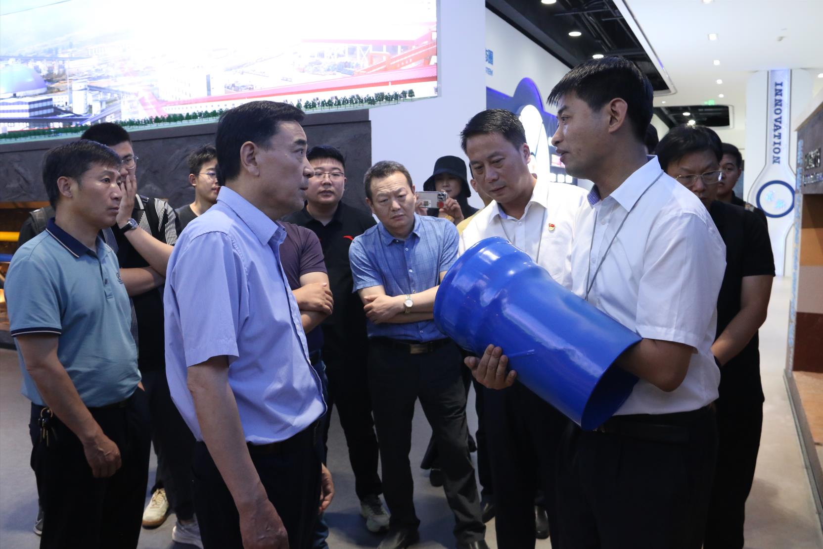 副董事長、總裁倪奉堯熱烈歡迎理事長一行蒞臨公司考察指導,感謝徐州市水利學會頒發授予“理事單位”及對公司高度認可,公司會積極履行理事單位工作義務,加強內部溝通、積極參與學會各項活動。產品也先后應用于徐州各縣區城鄉供水、市區熱力保溫管道及、小沿河引水等重點市政水利工程,希望通過本次考察交流促進雙方深入合作。