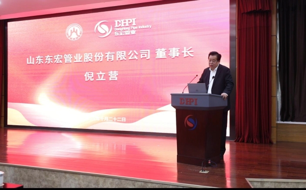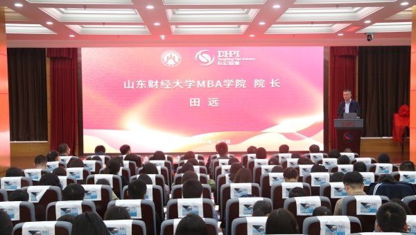 上午10:00活動正式開始,上半場議程由東宏管業(yè)職業(yè)技術學院副院長鄭軍主持。倪立營在活動上發(fā)表致辭,他指出,山東財經(jīng)大學和東宏管業(yè)成立MBA教學實踐基地,是雙方打通院企合作快車道、打造產(chǎn)教融合共同體的有力舉措和務實行動。希望以此次揭牌儀式為新起點,依托教學實踐基地平臺,借助學院的教育資源,融合公司在國內(nèi)復合管道行業(yè)首家主板上市企業(yè)的品牌優(yōu)勢和商業(yè)實踐平臺,深化產(chǎn)教融合,提升MBA學員培養(yǎng)質(zhì)量,實現(xiàn)資源共享、優(yōu)勢互補,為促進經(jīng)濟社會發(fā)展全面綠色轉(zhuǎn)型做出新的更大貢獻!