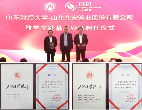 2023年10月22日,由山東財經(jīng)大學MBA學院、山東東宏管業(yè)股份有限公司主辦,濟寧市品牌建設促進會、山東財經(jīng)大學MBA濟寧校友會協(xié)辦的山東財經(jīng)大學—山東東宏管業(yè)股份有限公司教學實踐基地揭牌儀式在東宏管業(yè)多功能會議廳隆重舉行。濟寧市人大原常委、二級巡視員周光全,濟寧市品牌建設促進會秘書長秦燁偉,濟寧市工業(yè)和信息化研究院院長周秋平;山東財經(jīng)大學MBA學院院長田遠、合作發(fā)展處副處長邵偉然、MBA學院副院長孫文剛、濟寧校友會秘書長顏曉;東宏管業(yè)董事長倪立營、副董事長鞠恒山、助企干部高茹以及山東財經(jīng)大學MBA學院340名學員參加本次活動。