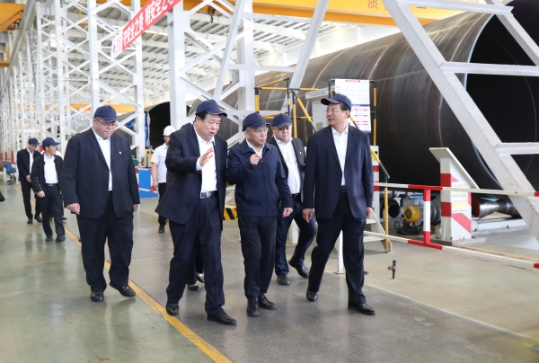 周立偉一行先后參觀了公司智慧展廳、防腐鋼管車間,詳細了解企業(yè)主題教育開展、生產經營、科技創(chuàng)新、產品工藝、市場客戶等情況。倪立營匯報了企業(yè)基本情況、智能化車間建設、國家重點工程業(yè)績、安全生產、公司未來規(guī)劃等情況。